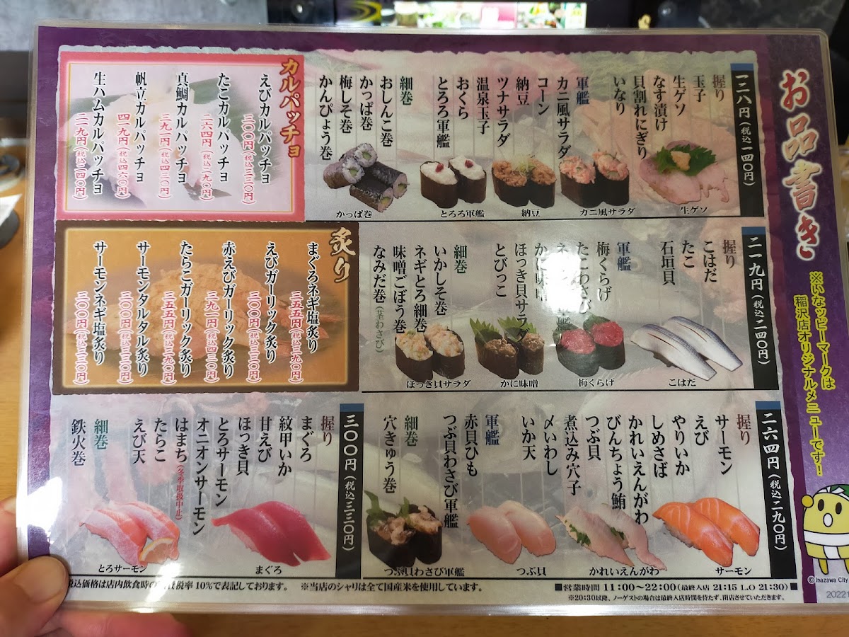Welcome to **Tokubei Inazawa**, an upscale conveyor sushi experience nestled in Inazawa, Japan. Offering a delightful array of fresh sushi, this restaurant stands out for its quality and ambiance. With its inviting decor, it's an ideal setting for both solo diners and families looking to indulge in a delicious meal.